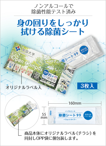 国産アルコールウェットミニ3枚(オリジナルラベル入タイプ)