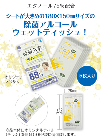 国産アルコールウェットミニ5枚(オリジナルラベル入タイプ)